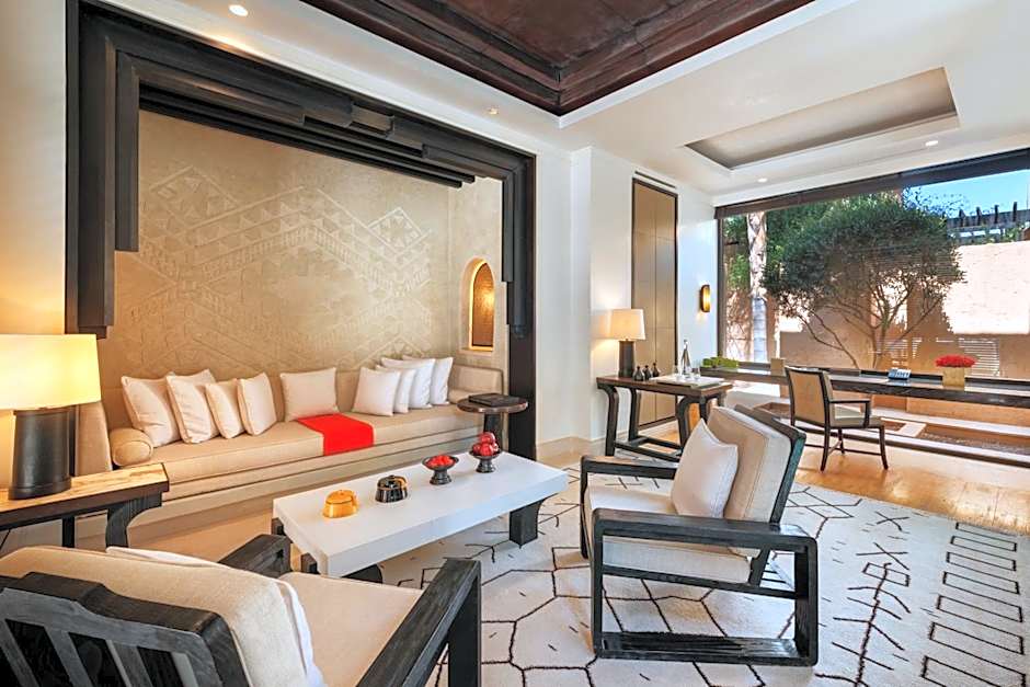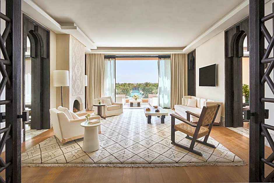 This suite offers private plunge pools and sunbathing areas. The bathrooms feature bathtubs and separated steam showers with traditional hammam set up. The unit features views over the Atlas Mountains.